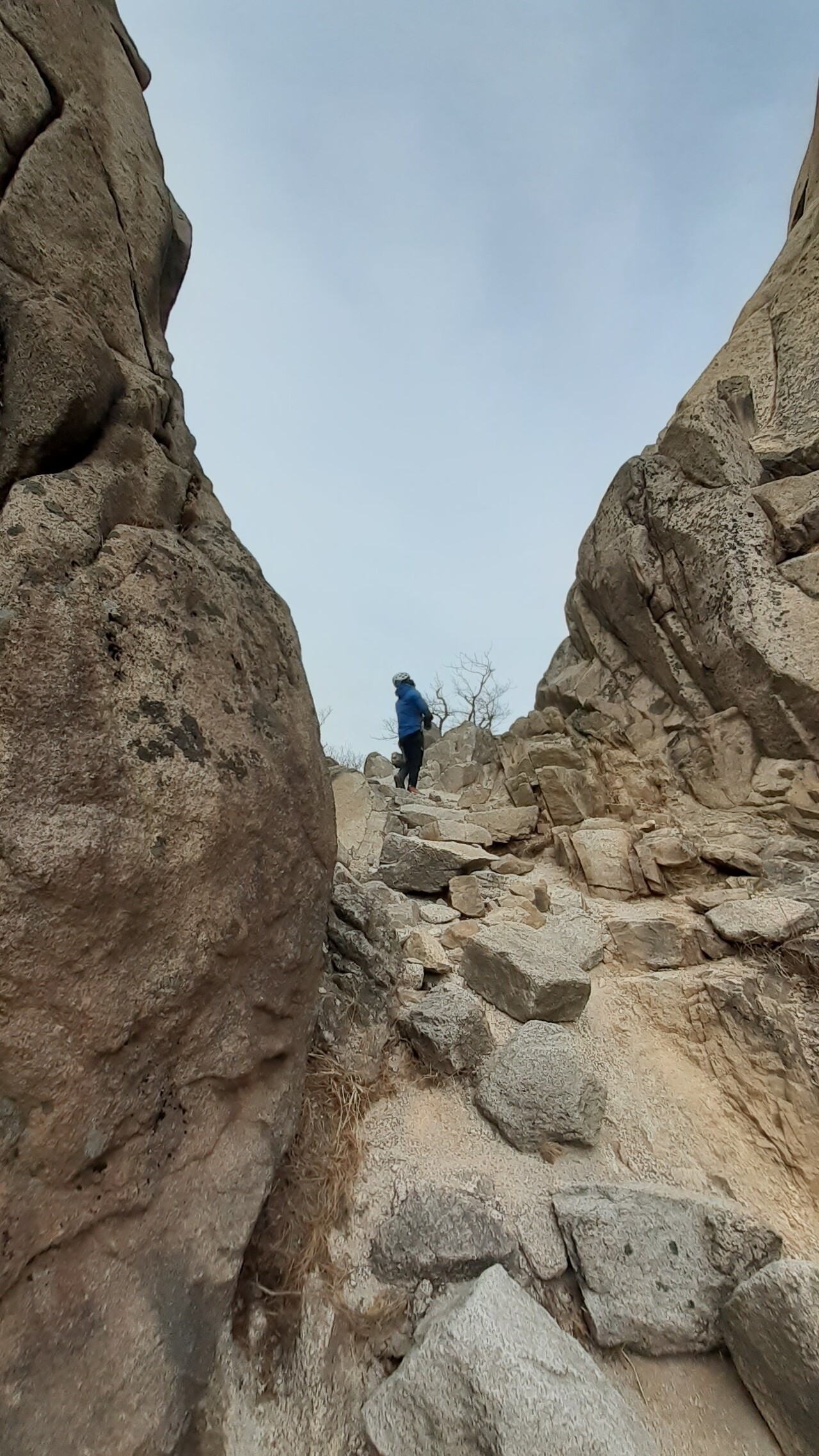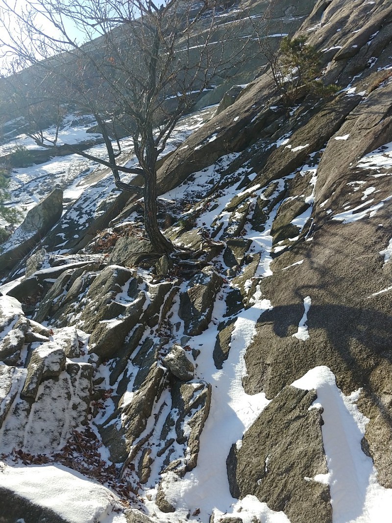 정상은 칼바람이 불고 하강하는 바위쪽은 더한 바람이 분다.