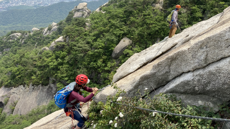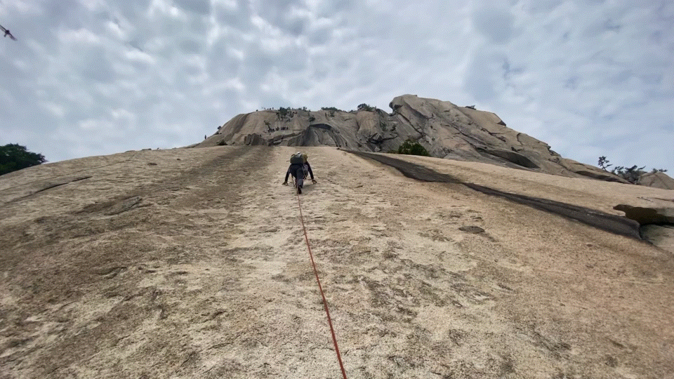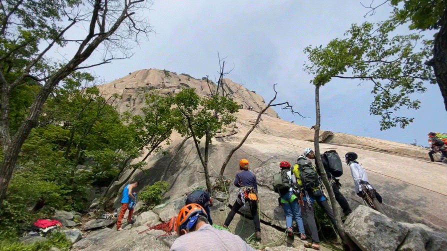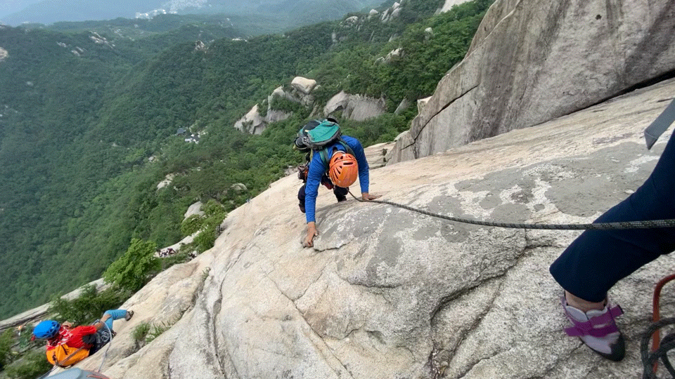 슬랩부터 크렉, 침니 등 다양한 코스가 어우러져 있기 때문에 모든 등반가에게 사랑받고 가장 많은 사람들이 몰리는 코스이기도 하지요.