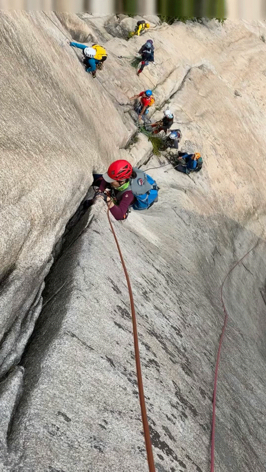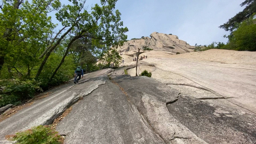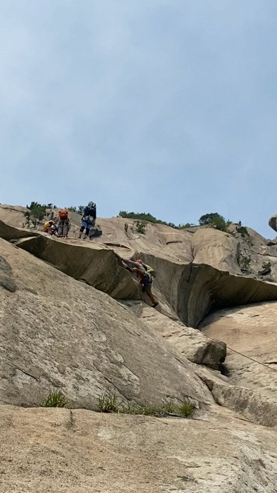 조금 돌아서 대슬랩 하단까지 접근했는데 부지런한 등반가들이 이미 주요 루트에 대기 중이셨죠..