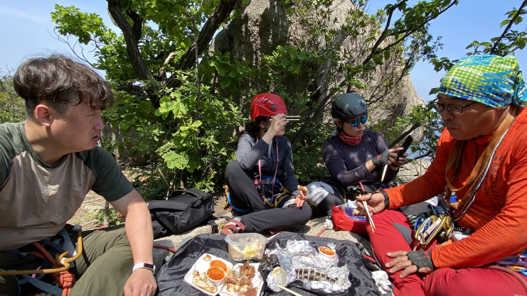 두 번째 피치도 가볍게 오르고 나면 탁 트인 전경과 편히 앉아서 쉴 수 있는 너른 바위가 제공됩니다.
